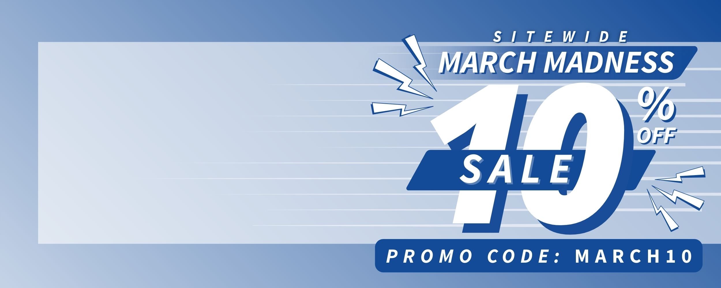 - Use promo code 'MARCH10' during checkout to recieve your discount.