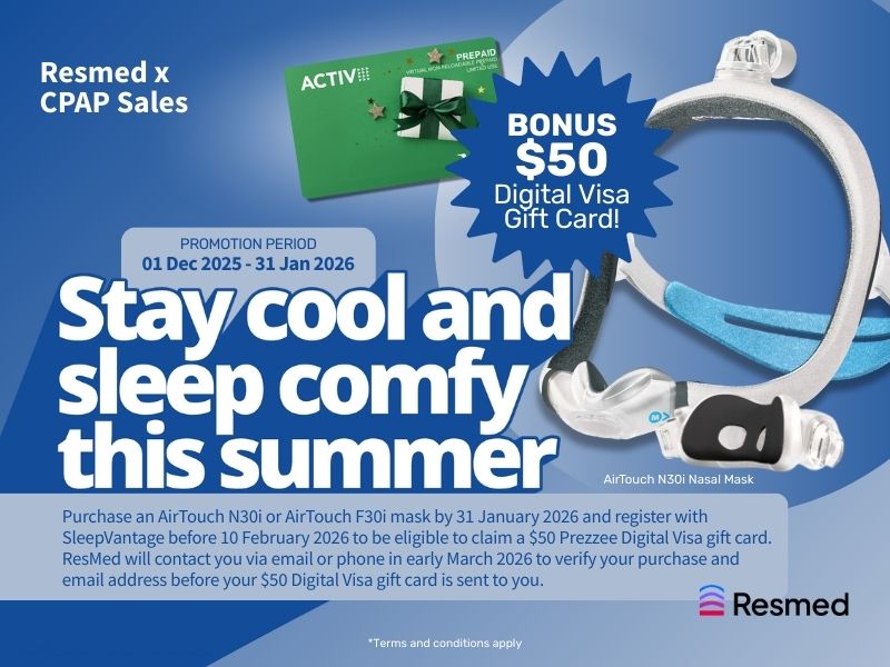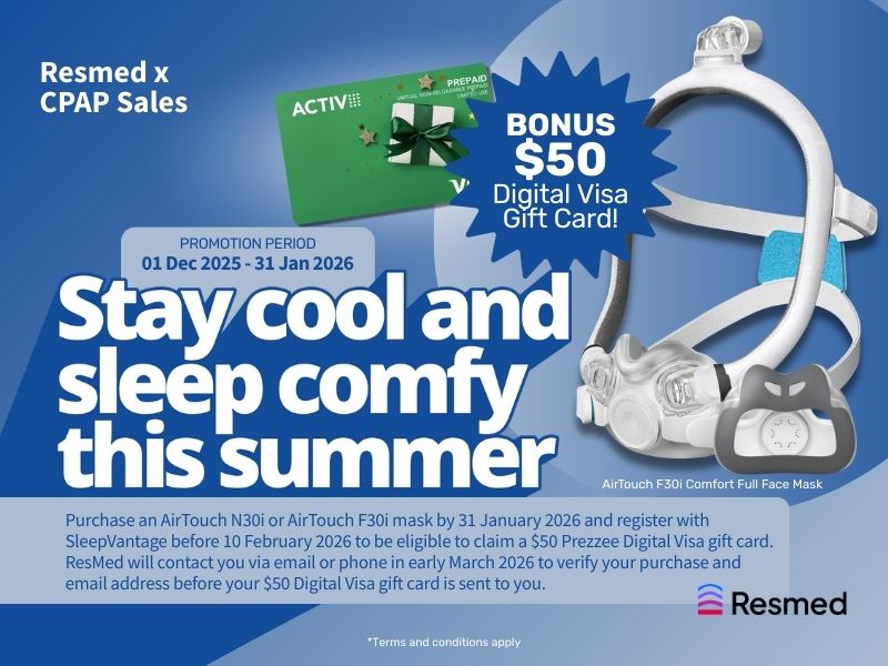 Purchase a Resmed AirTouch F30i full face mask between 1st December 2025 - 31st January 2026, and register with Sleepvantage to receive a $50 Digital Visa gift card.*