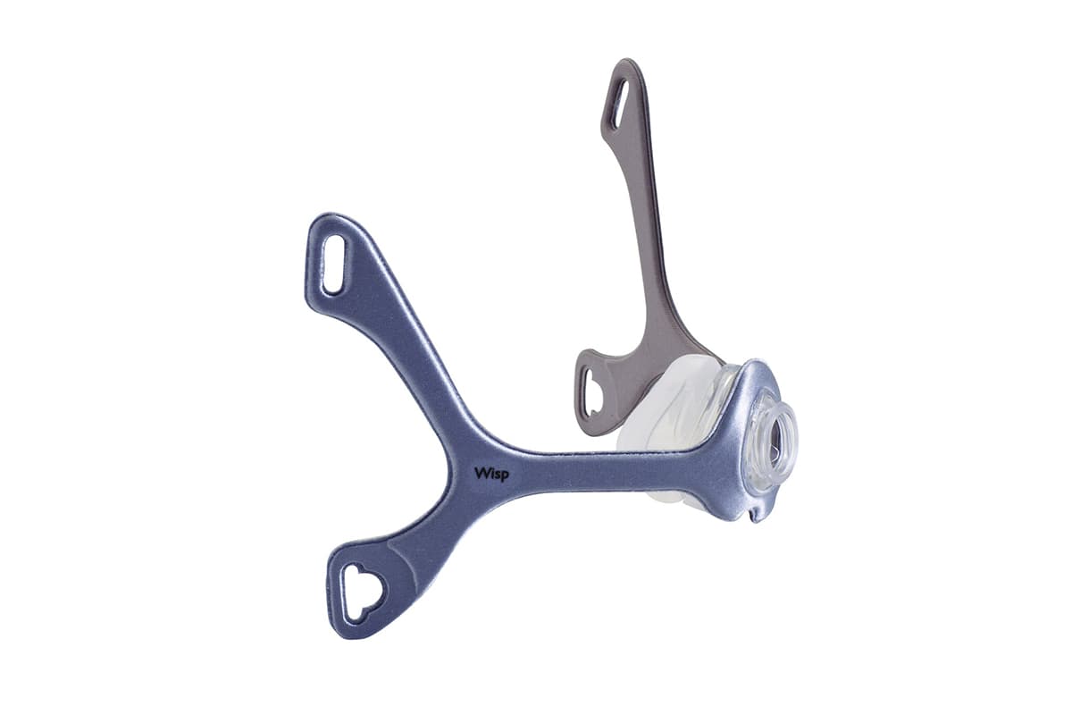The Philips Respironics Wisp comes with 2 different style frames. The clear frame is made of a clear polycarbonate material that is flexible and durable. The Fabric frames is a silver colour frame which is padded against the head. Both frames perform well with respect to durability and some feel the fabric frame is softer against the head and less likely to cause some marking on the face.